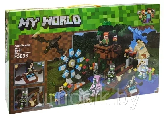 Конструктор My World "Встреча у мельницы" (446 дет.), 930930 показывает стуацию, когда у Стива день рождения, и на свой праздник наш герой решил собрать всех своих знакомых из мира Майнкрафт. Не обделил он вниманием даже тех существ, с кем ему приходилось враждовать – в списке приглашенных очутились зомби, криперы, скелеты и прочая нечисть.