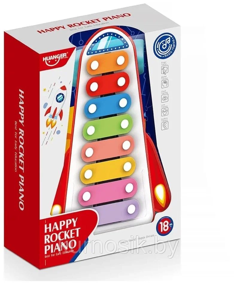 Музыкальная игрушка подарит массу приятных впечатлений. Играя на ярком металлофоне с 8-ю разноцветными пластинами, ребёнок может устроить концерт для игрушек или порадовать родных и близких своим творчеством. Слегка ударяя по пластинкам палочкой, малыш будет извлекать звуки разной тональности. Одновременно с весёлой игрой на музыкальном инструменте ребёнок будет развивать координацию движений и музыкальный слух. А чувства такта и ритма, приобретённые во время репетиций, пригодятся ему в школе.