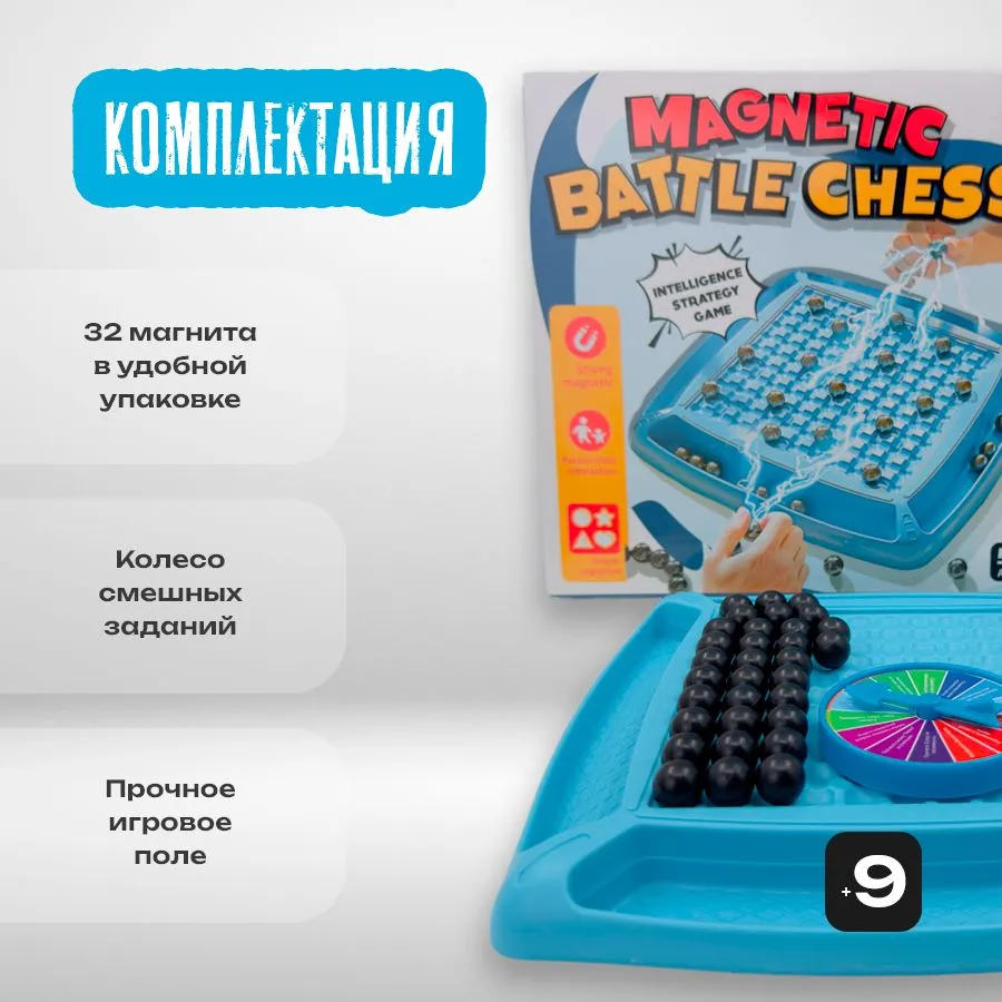 32 сильных магнита Благодаря большому количеству магнитов вы сможете сыграть до 8 человек, разделившись на команды. Полностью на русском языке.