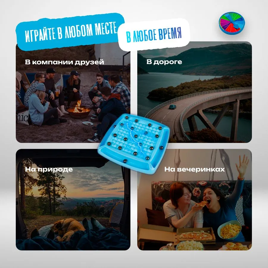 Играйте в любом месте Отличное развлечение в компании друзей и на вечеринках. Возьмите в дорогу и на природу и точно не будет скучно.