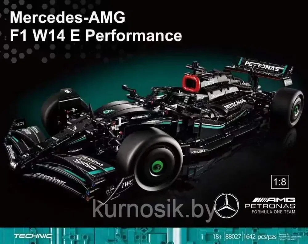 Ощутите мощь и инновации Формулы 1, собрав собственную модель легендарного болида команды Mercedes-AMG! Этот конструктор, состоящий из 1642 деталей, предлагает увлекательное и детальное воспроизведение гоночного автомобиля сезона 2023 — Mercedes-AMG F1 W14 E Performance.